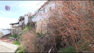 Расположенные выше дома могут в любой момент обрушиться на находящиеся ниже жилые строения. В результате оползня просела дорога, а в ограждении образовались крупные трещины.
